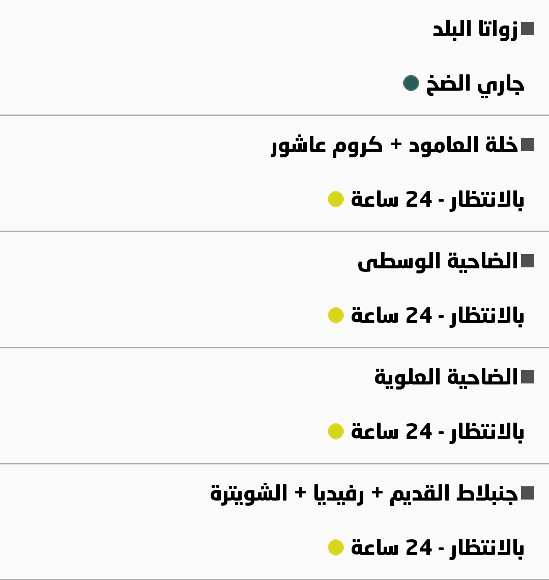 جدول توزيع المياه في نابلس