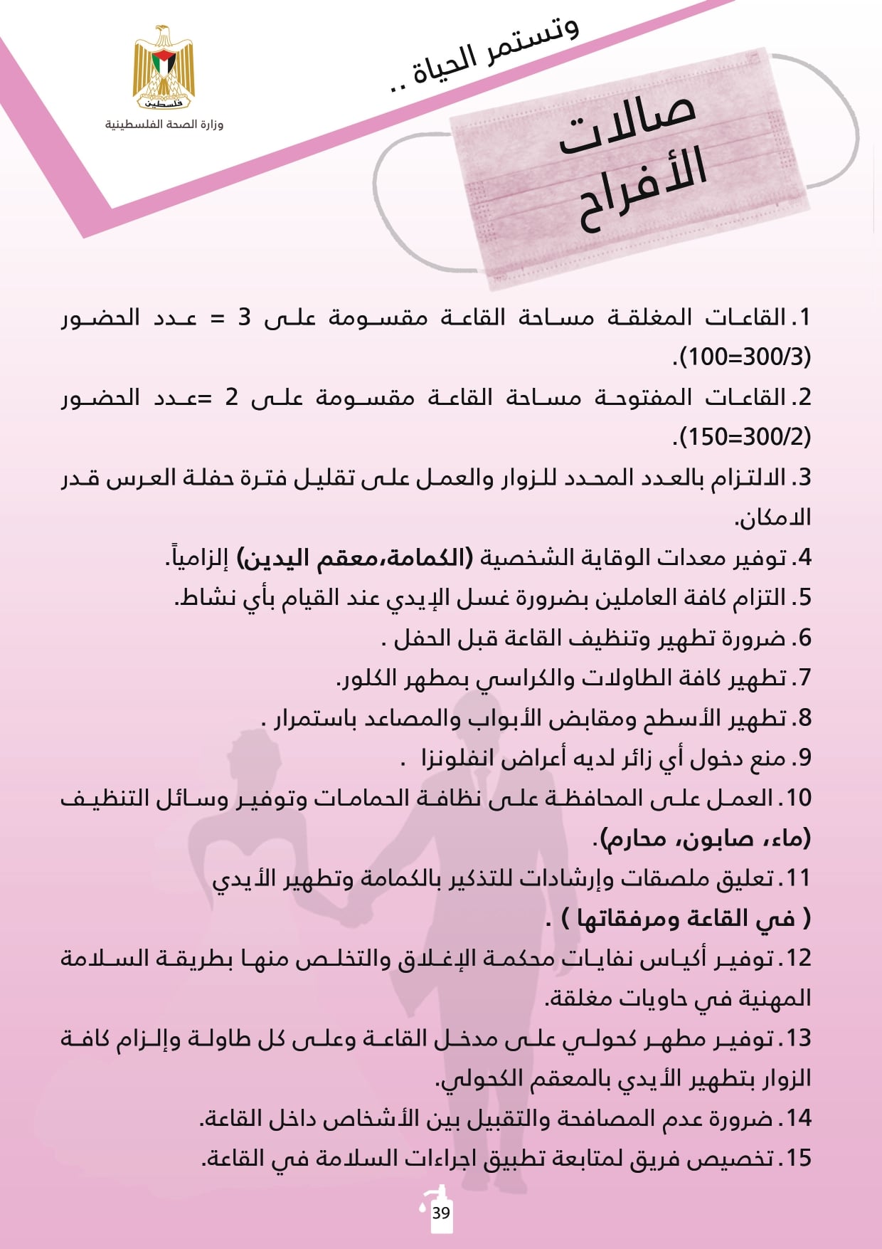 وزارة الصحة توضح بروتوكول التعايش مع كورونا في صالات الأفراح.