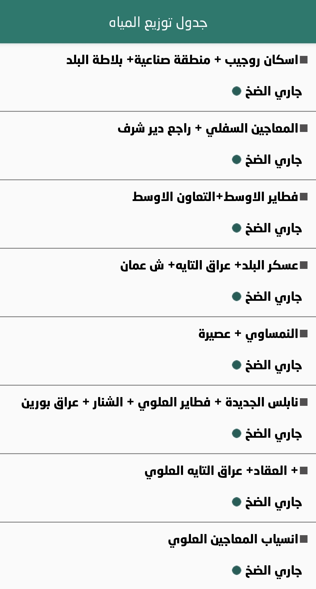 جدول توزيع المياه في نابلس صباح الأحد 22.11.2020.
