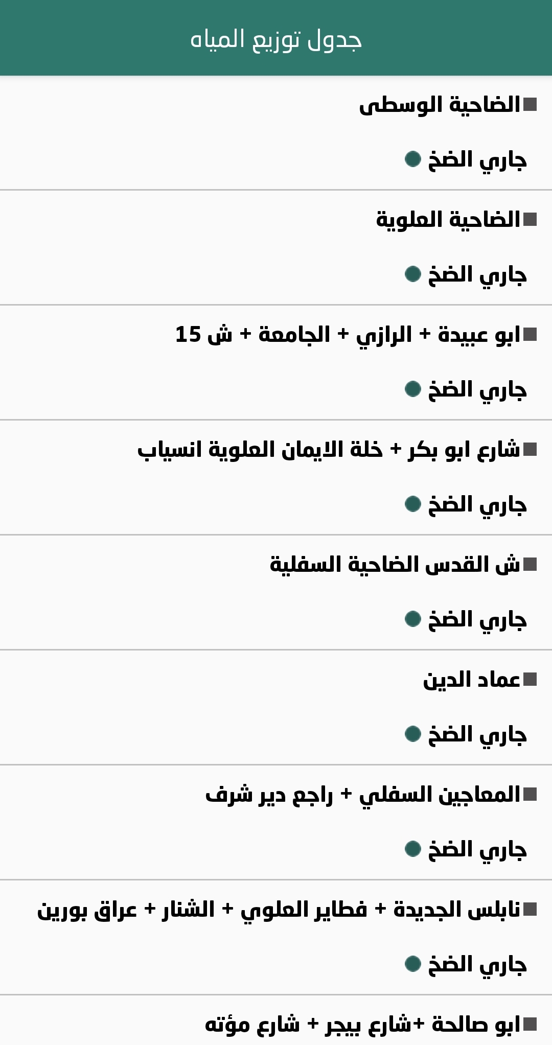 جدول توزيع المياه في نابلس