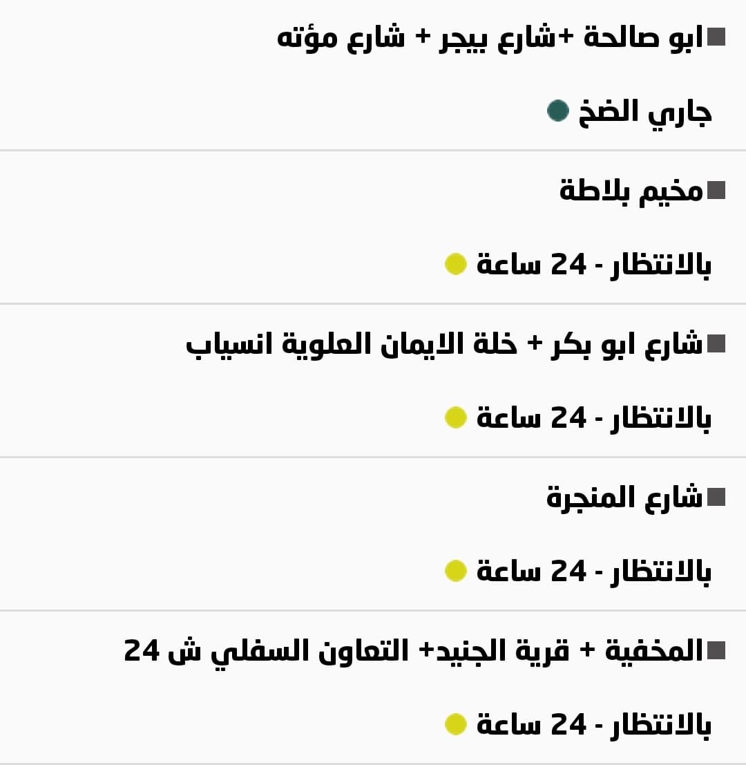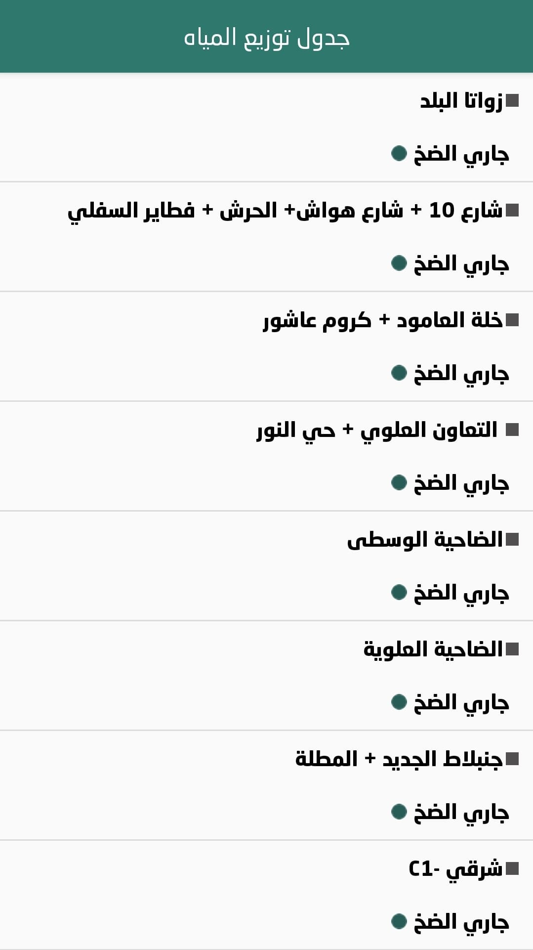 المناطق المزودد بالمياه حاليا