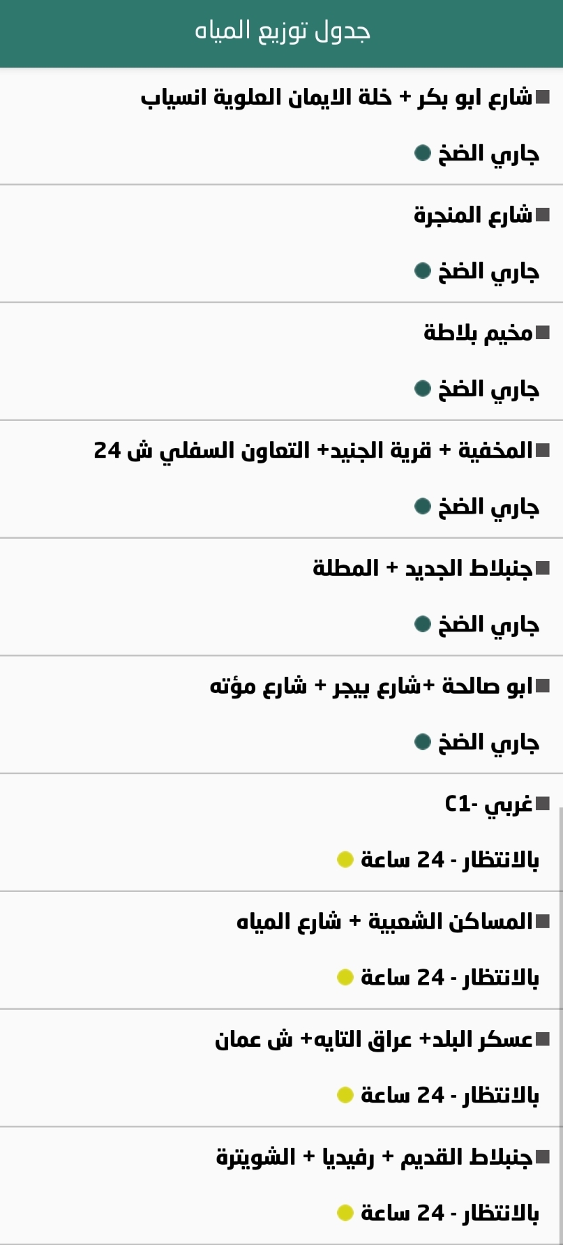 جدول توزيع المياه في نابلس