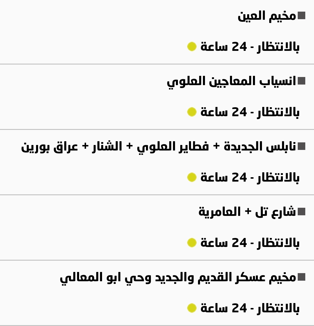 جدول توزيع المياه في نابلس وضواحيها ليوم الأربعاء 2.12.20202.