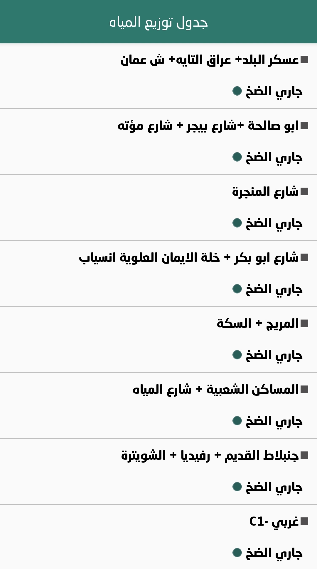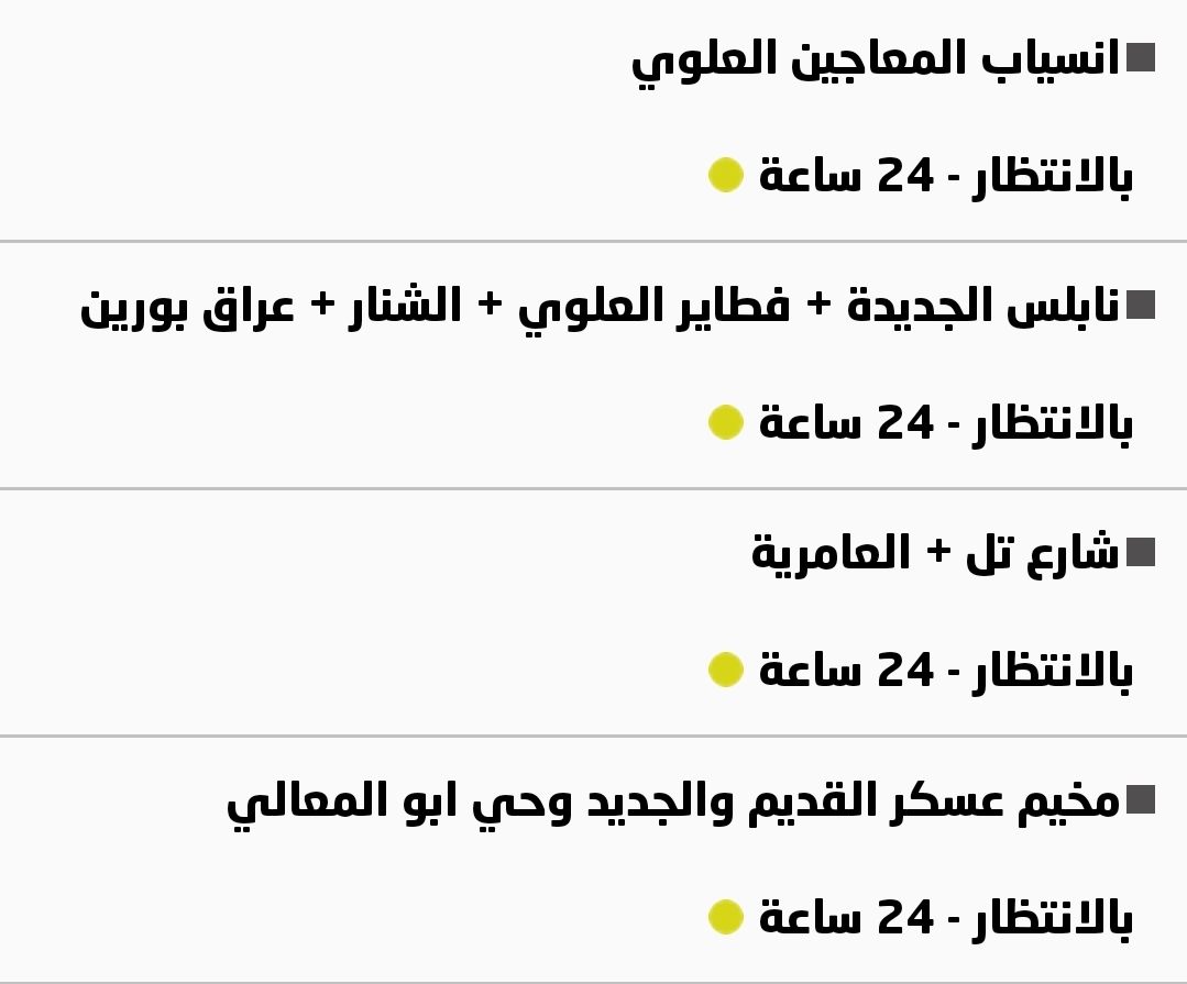 جدول توزيع المياه في نابلس