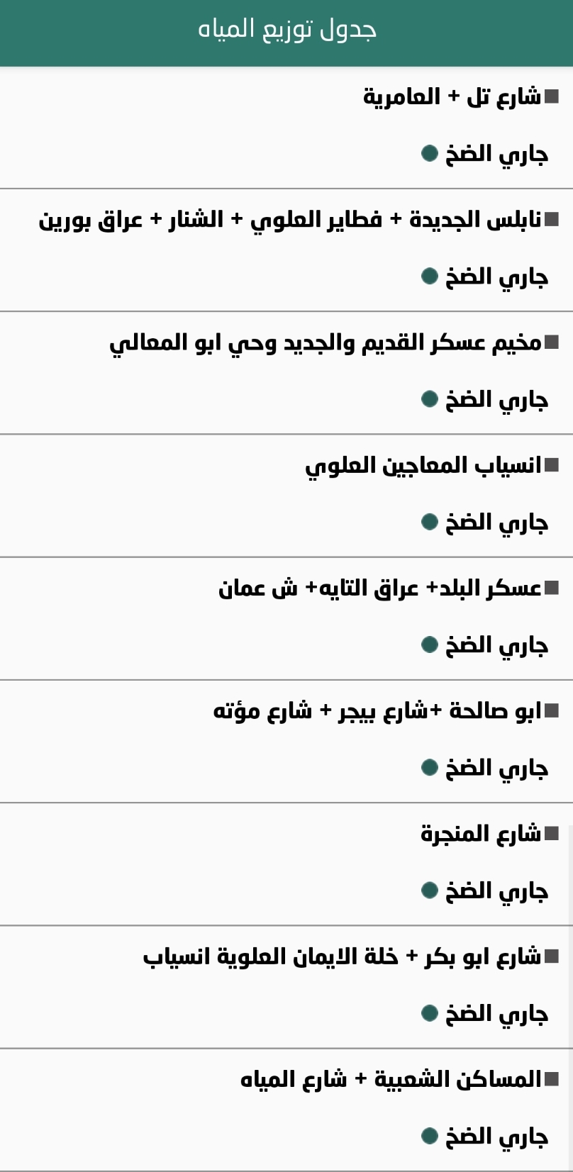 جدول توزيع المياه في نابلس وضواحيها ليوم الأربعاء 09.12.2020.