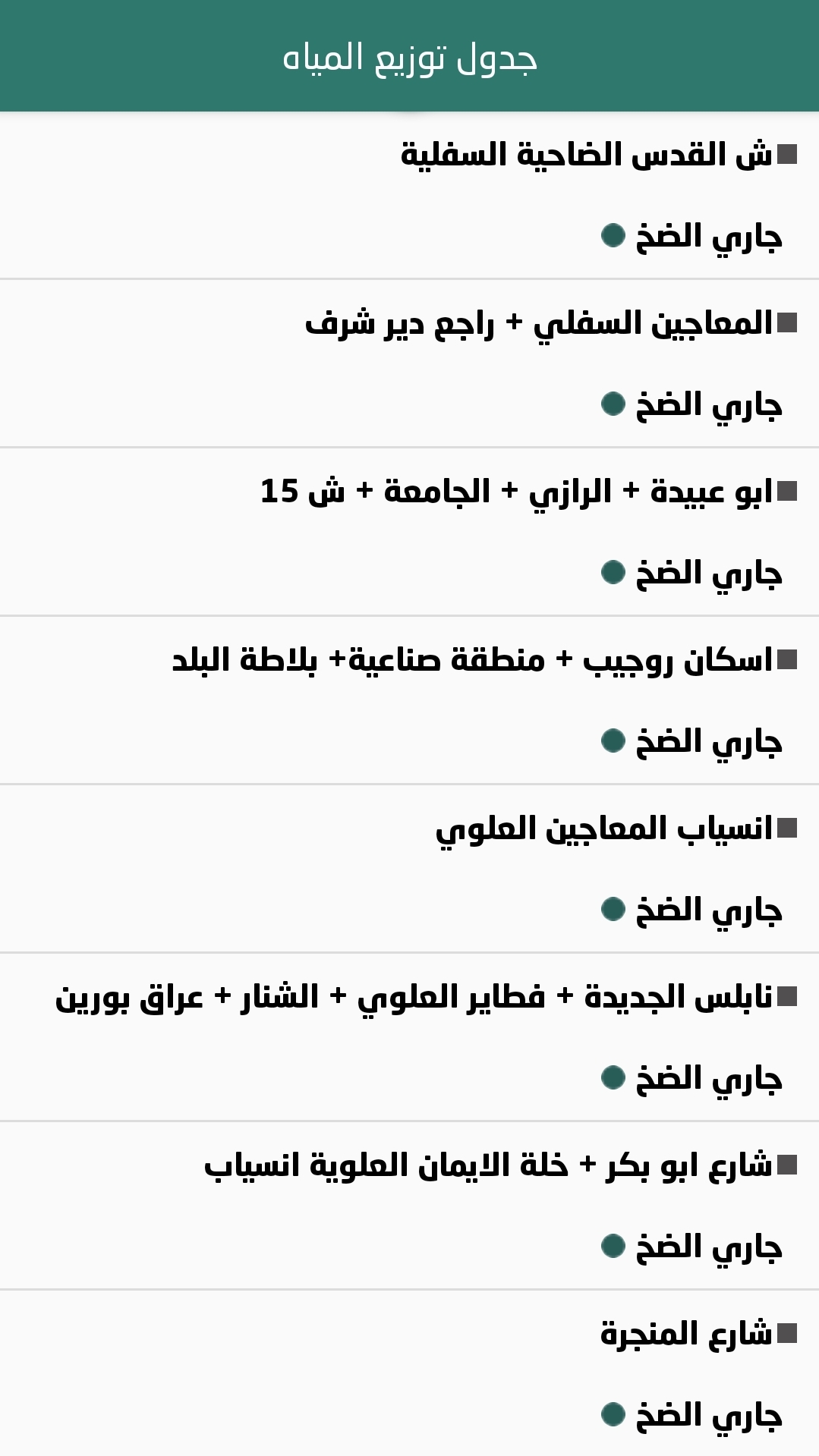 جدول توزيع المياه في نابلس وضواحيها ليوم الثلاثاء 22.12.2020.