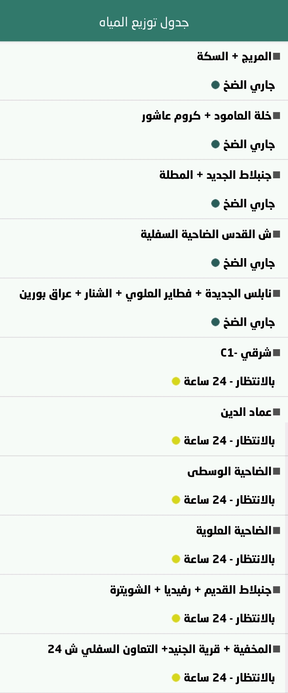 جدول توزيع المياه في نابلس وضواحيها ليوم الثلاثاء 29.12.2020.