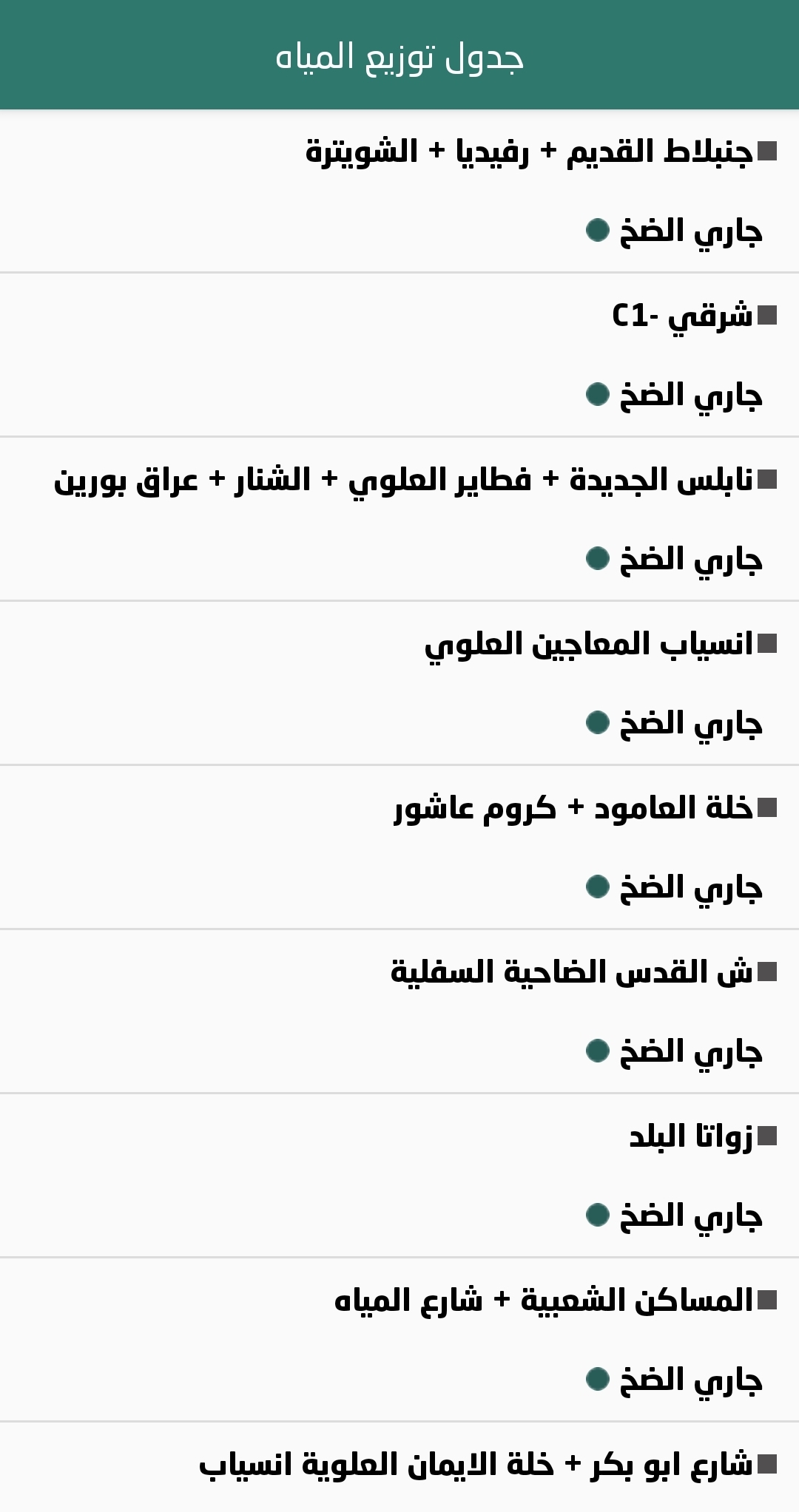 جدول توزيع المياه في نابلس وضواحيها ليوم الاثنين، 11.01.2021.