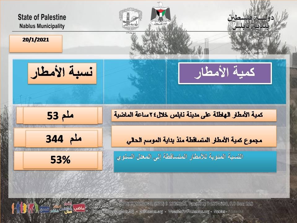 بلدية نابلس تنشر كمية الأمطار الهاطلة على المدينة والمجموع التراكمي منذ بداية الموسم.