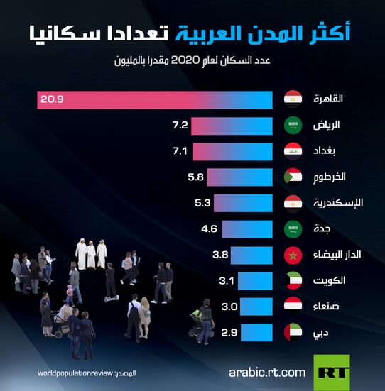 أكثر المدن العربية تعداداً بالسكان