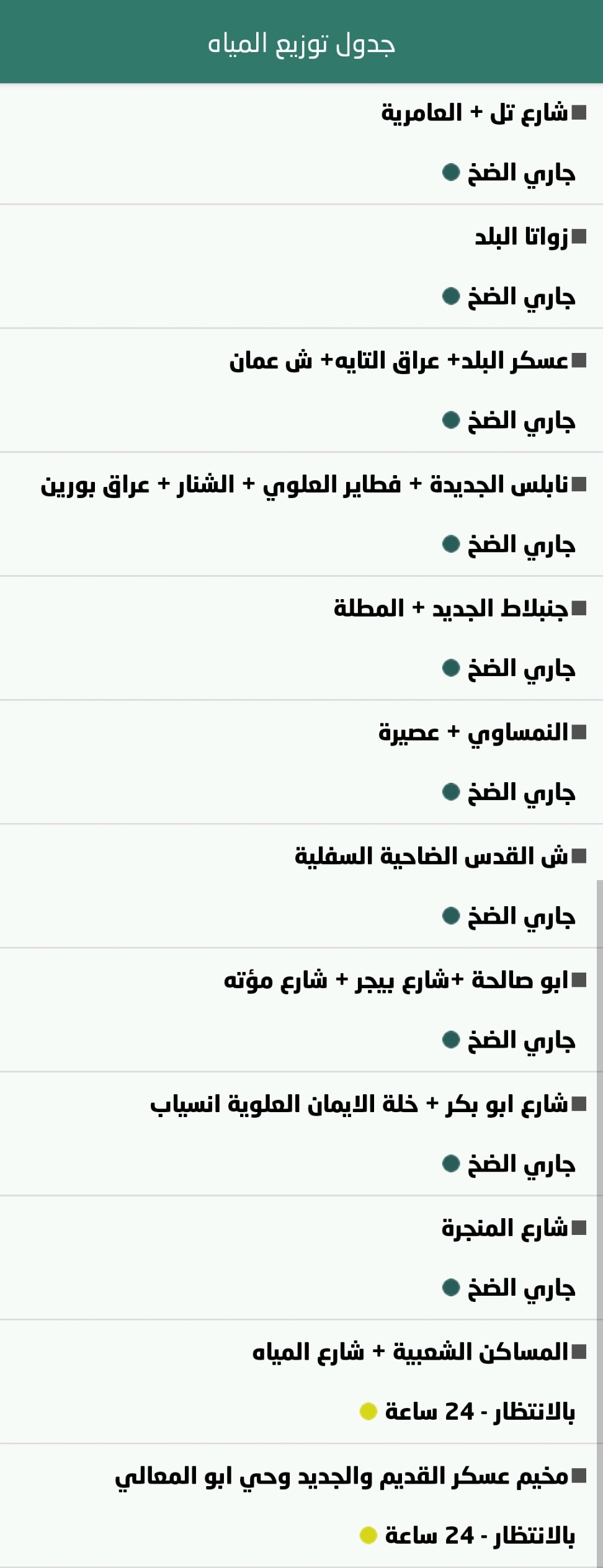 جدول توزيع المياه في نابلس