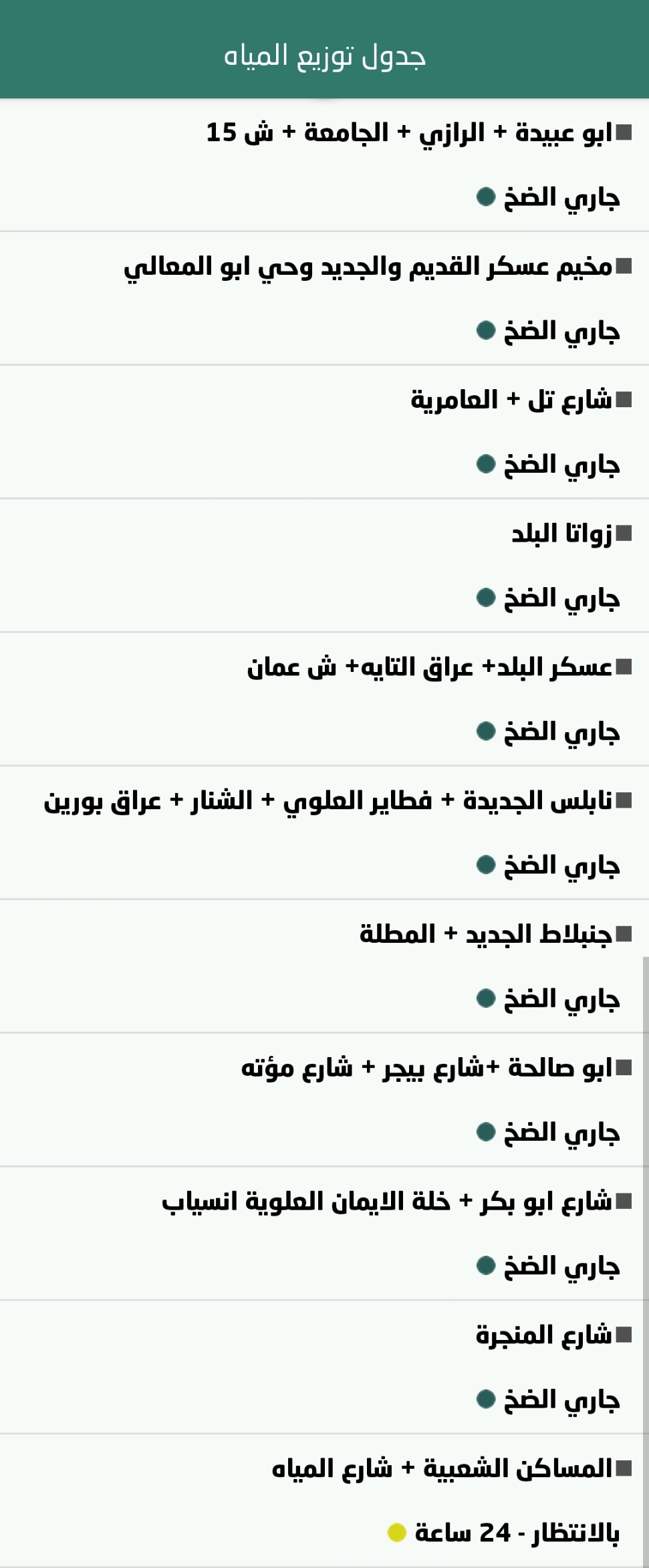 جدول توزيع المياه في نابلس