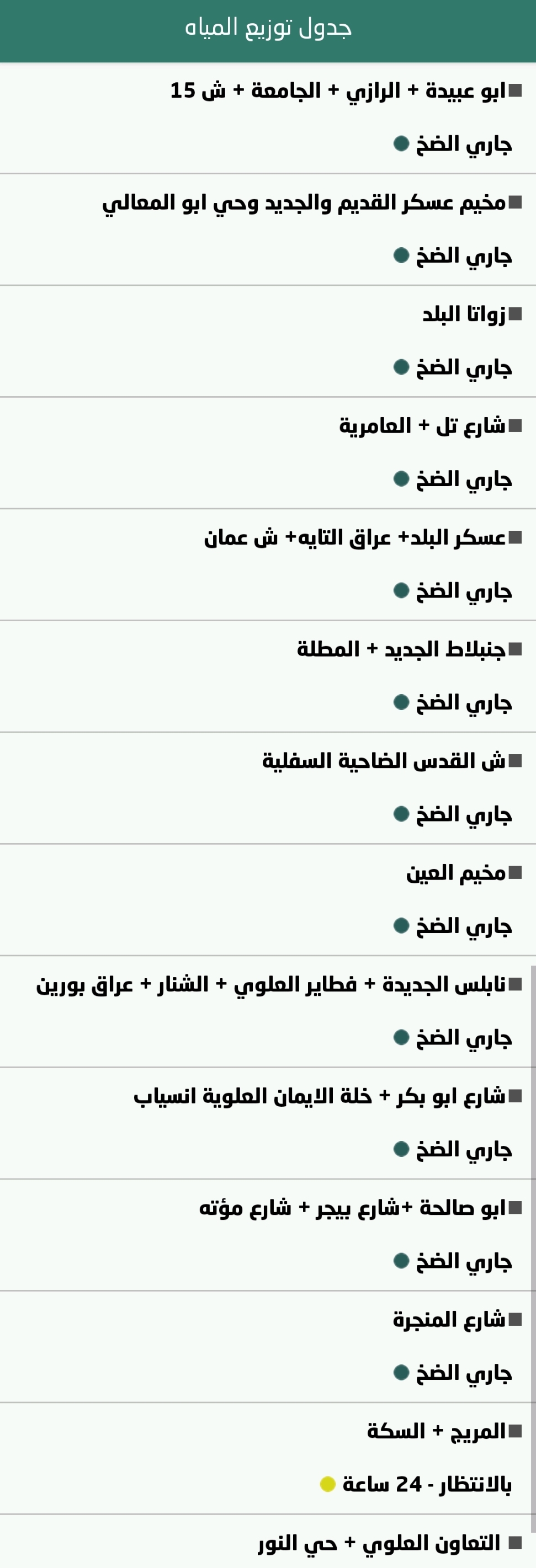 جدول توزيع المياه في نابلس