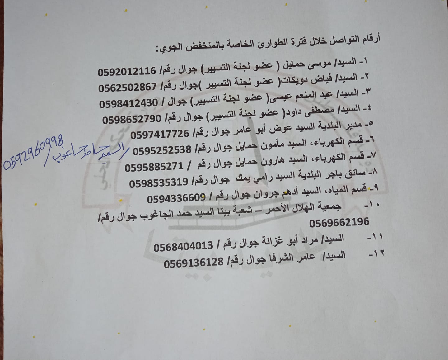 مع اقتراب وصول المنخفض القطبي، بلدية بيتا تنشر أرقام التواصل خلال فترة الطوارئ.