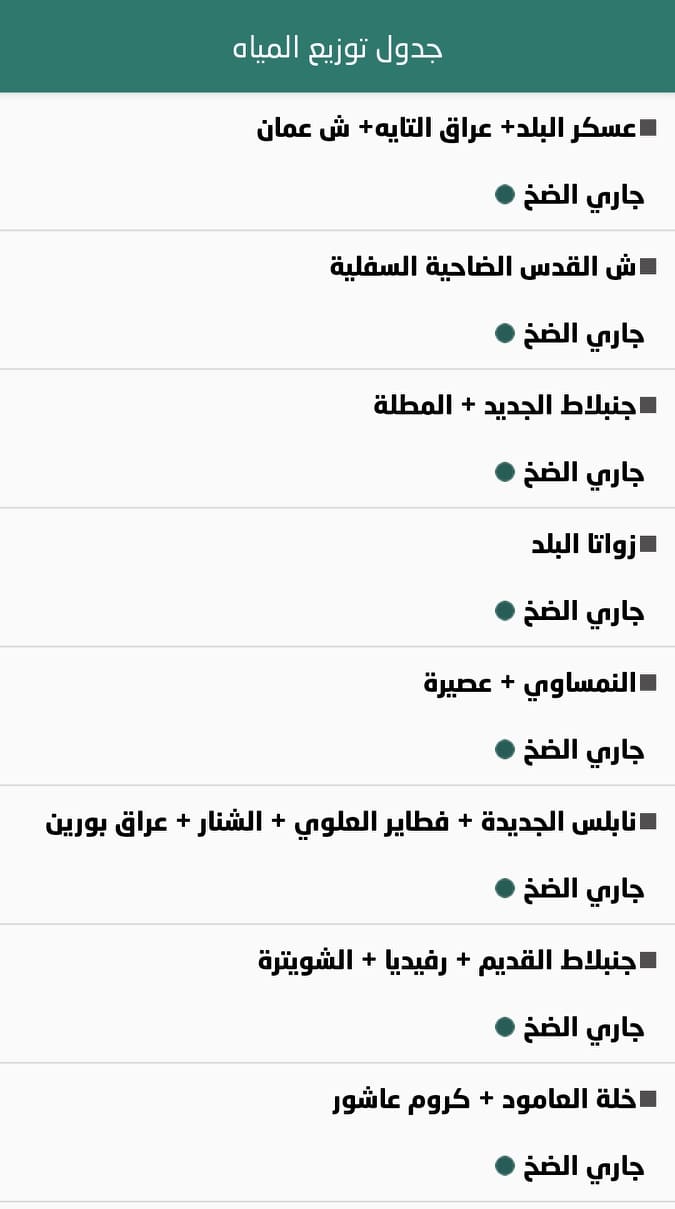 جدول توزيع المياه في نابلس وضواحيها ليوم الأربعاء 17.02.2021.