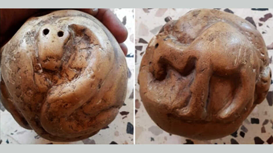 والحفر كما نرى يصور أسداً ما، لكن رأسه أقرب إلى رأس حية- تنين، وعلى ظهره ما يشبه أن يكون تصميم معبد ما.