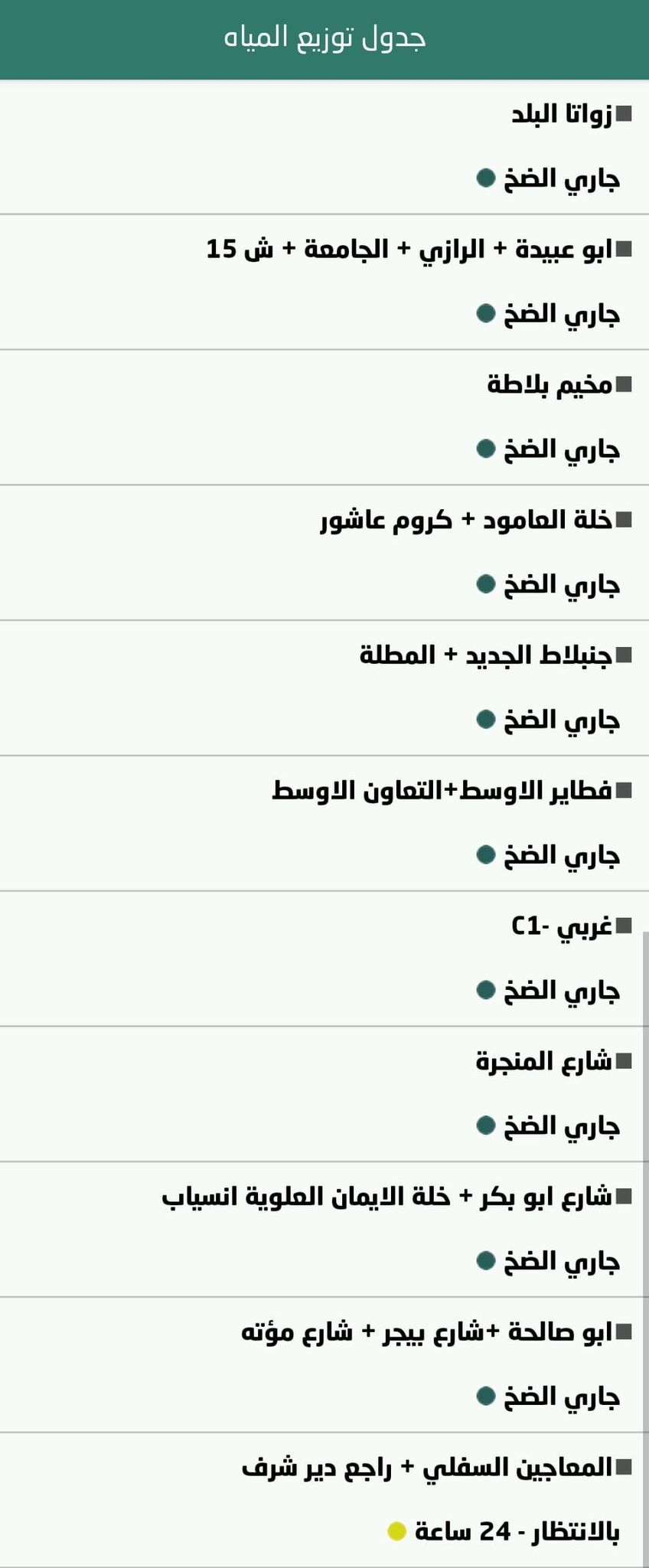 15. بلدية نابلس: جدول توزيع المياه