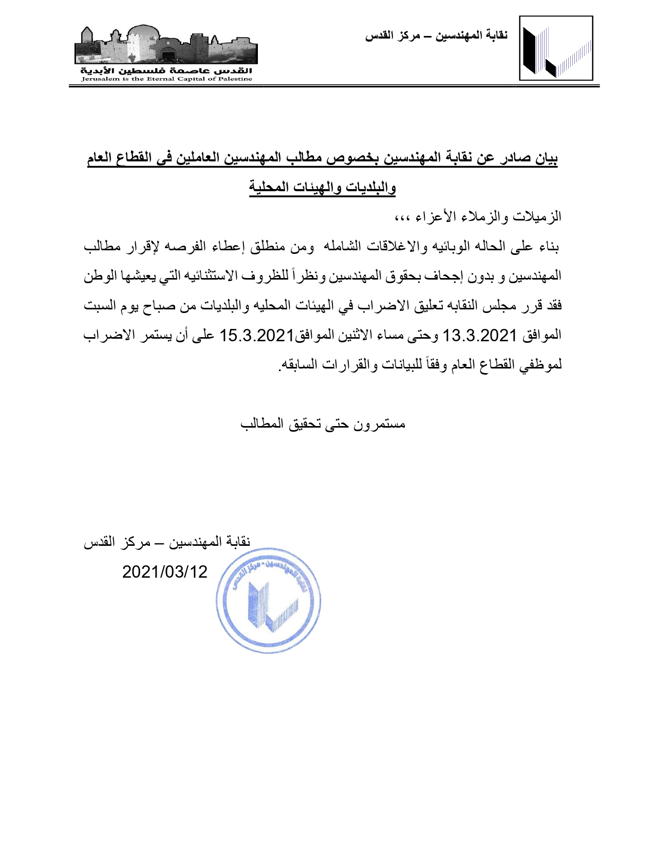 المصدر: نقابة المهندسين - فرع طولكرم