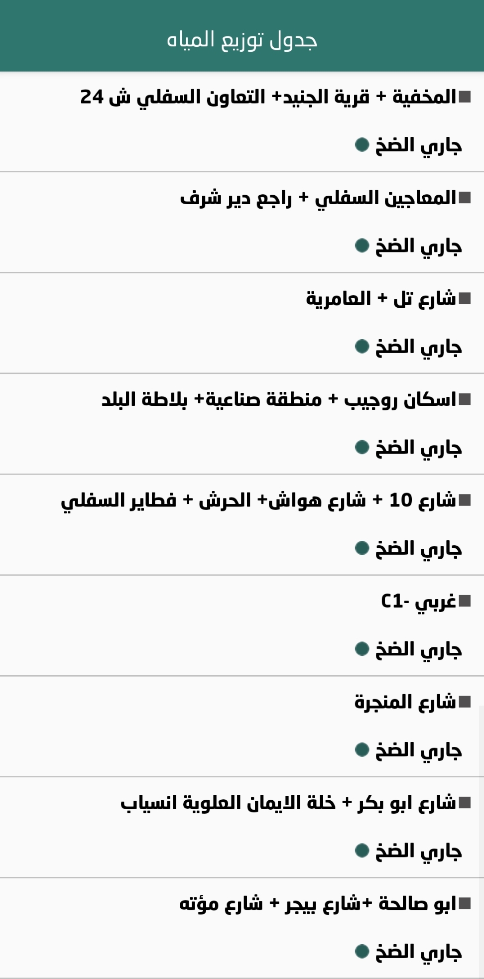 جدول توزيع المياه في نابلس