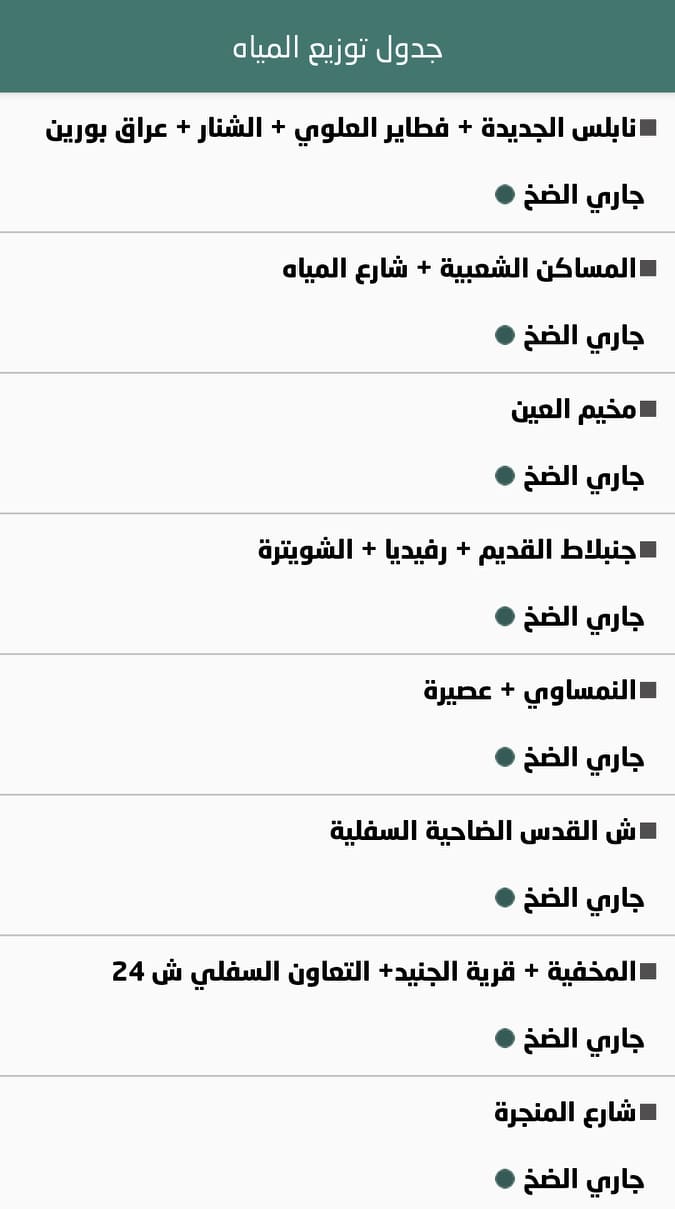 جدول توزيع المياه في نابلس