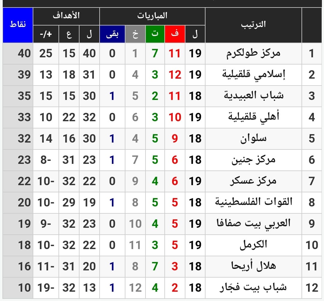 ترتيب فرق الاحتراف الجزئي بعد نهاية الأسبوع الـ19