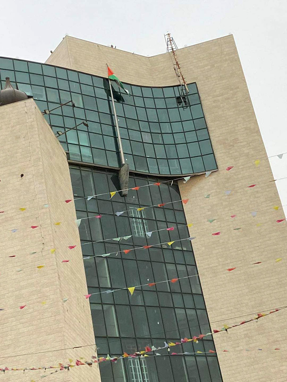 تعاملت فرق الإنقاذ في إطفائية بلدية نابلس، الثلاثاء 23.03.2021، مع حادث سقوط برج بث إذاعي على سطح مجمع بلدية نابلس التجاري وسط المدينة.