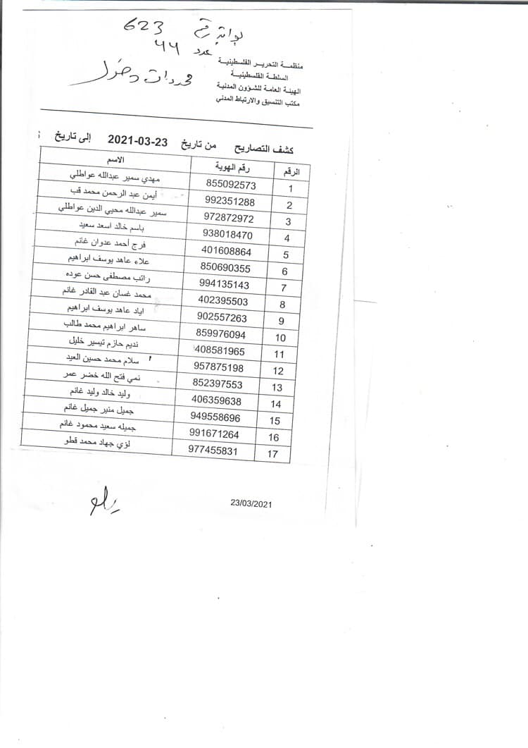 تعلن بلدية دير الغصون، الخميس 25.03.2021، للأسماء التالية عن ضرورة مراجعة البلدية خلال ساعات الدوام الرسمي لإكمال معاملاتهم بشأن تصاريح الجدار.