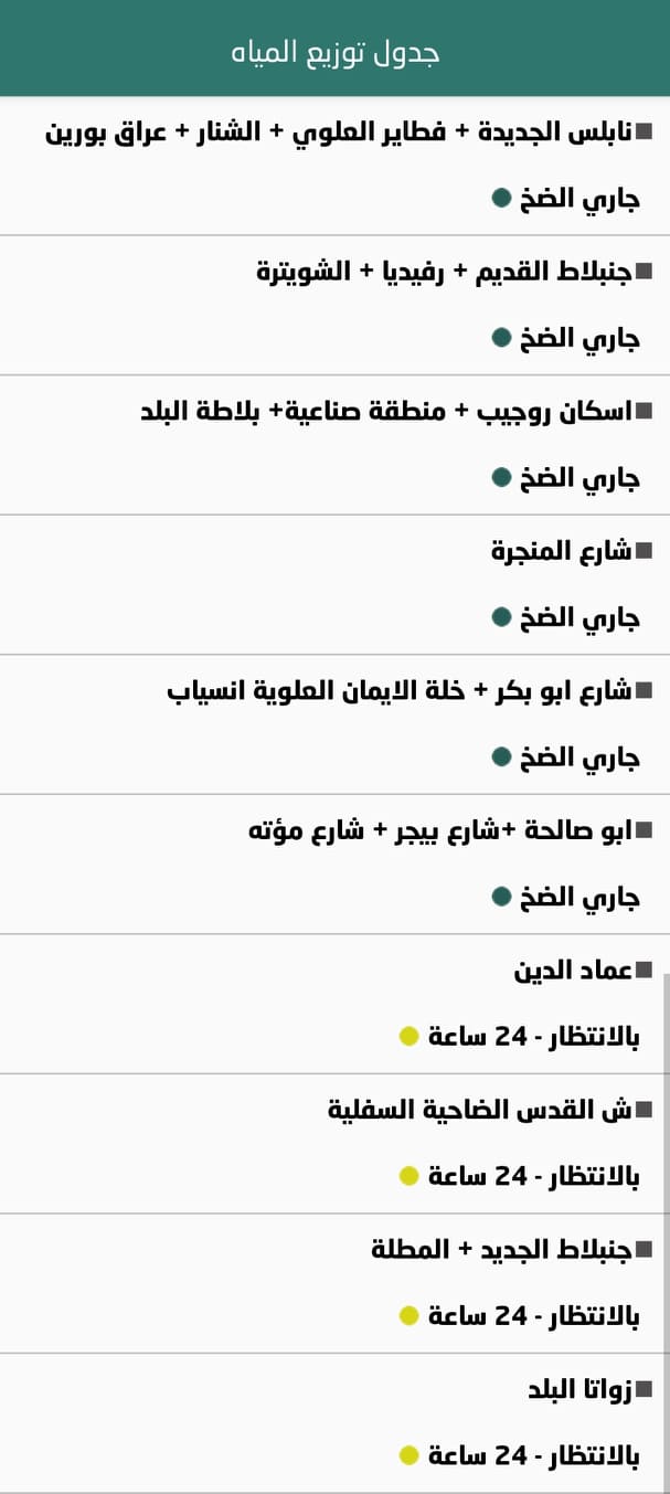 جدول توزيع المياه في نابلس