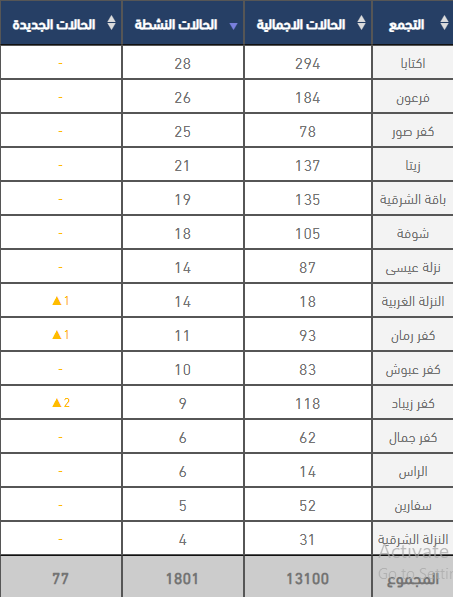 محافظة طولكرم تسجل 77 إصابة جديدة بكورونا، كان أعلاها في طولكرم تليها عنبتا.
