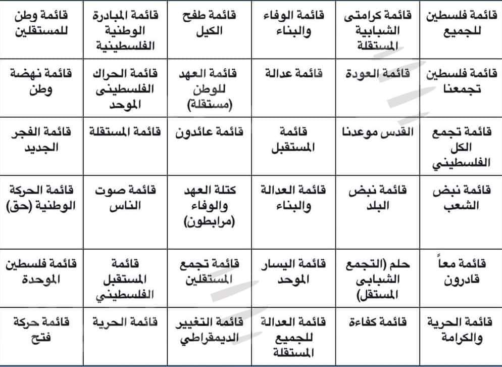 أسماء القوائم في الانتخابات التشريعية الفلسطينية