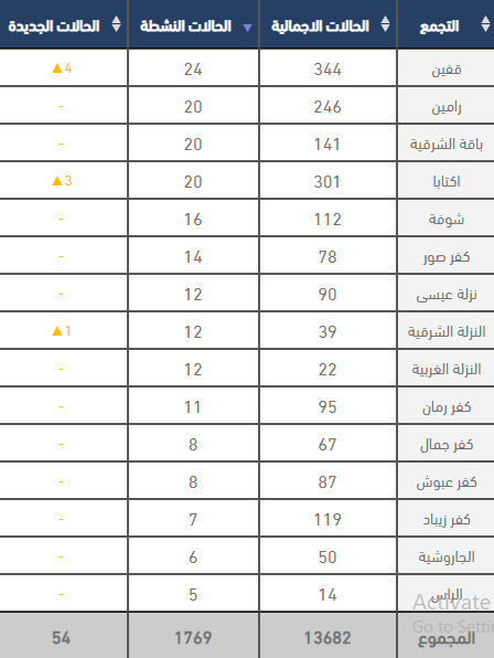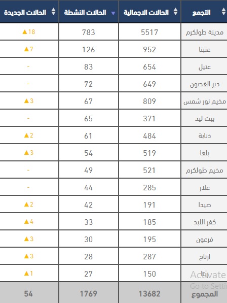 محافظة طولكرم تسجل 54 إصابة جديدة بكورونا، كان أعلاها في طولكرم تليها عنبتا.