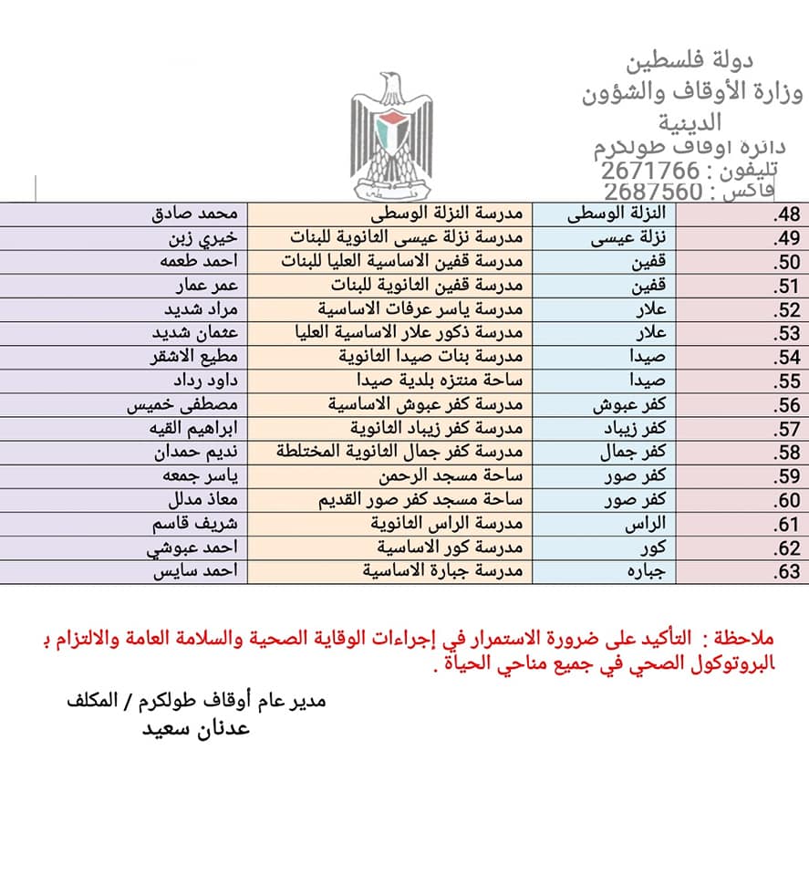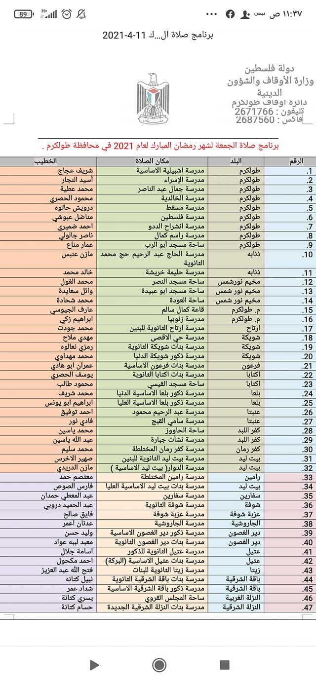 أوقاف طولكرم تعلن عن برنامج خطبة وصلاة الجمعة في الساحات العامة طيلة شهر رمضان في محافظة طولكرم.