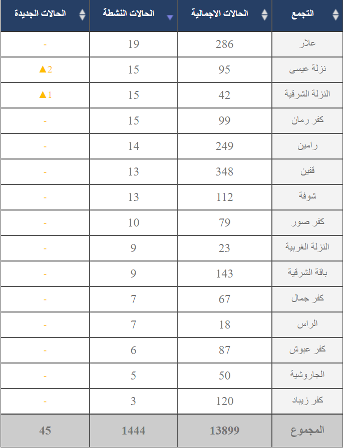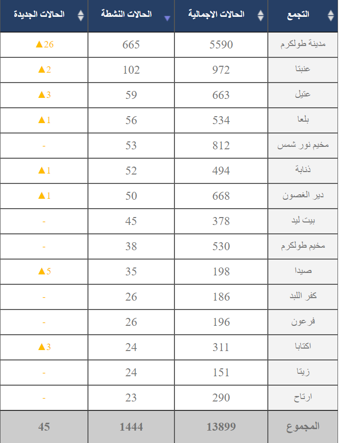 توزيع إصابات كورونا في قرى وبلدات محافظة طولكرم، ليوم الثلاثاء 13.04.2021.