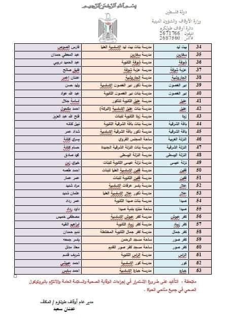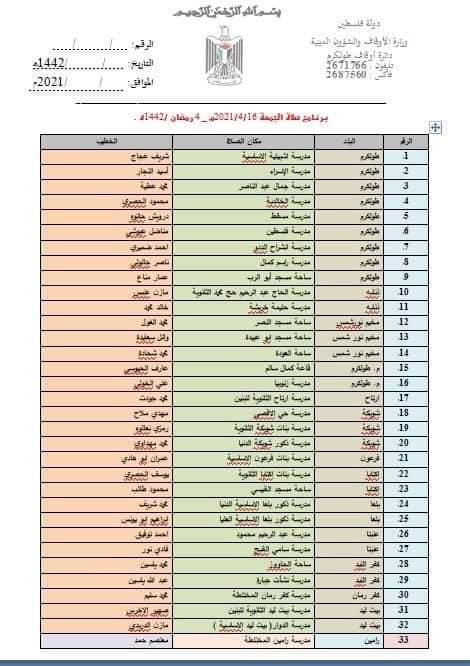 المصدر: مديرية أوقاف طولكرم