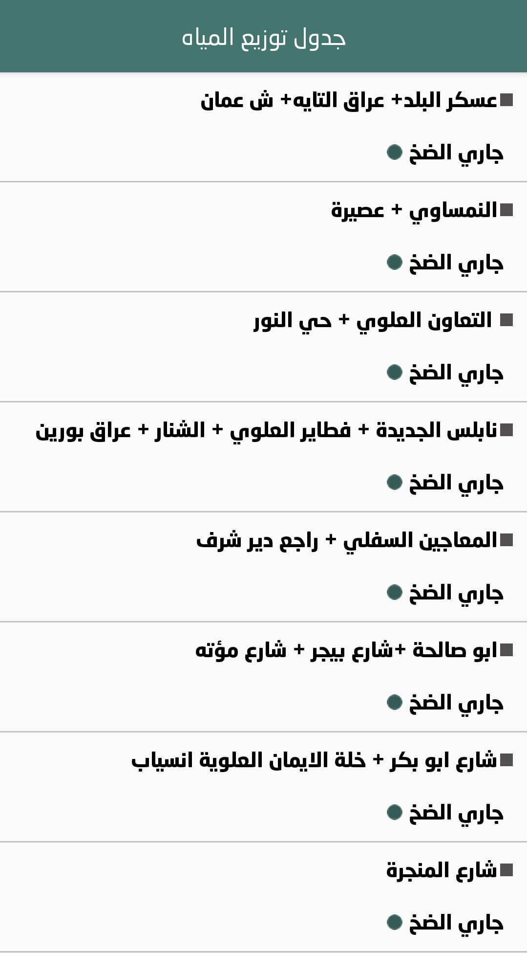 جدول توزيع المياه في نابلس وضواحيها ليوم الاثنين 19.4.2021.