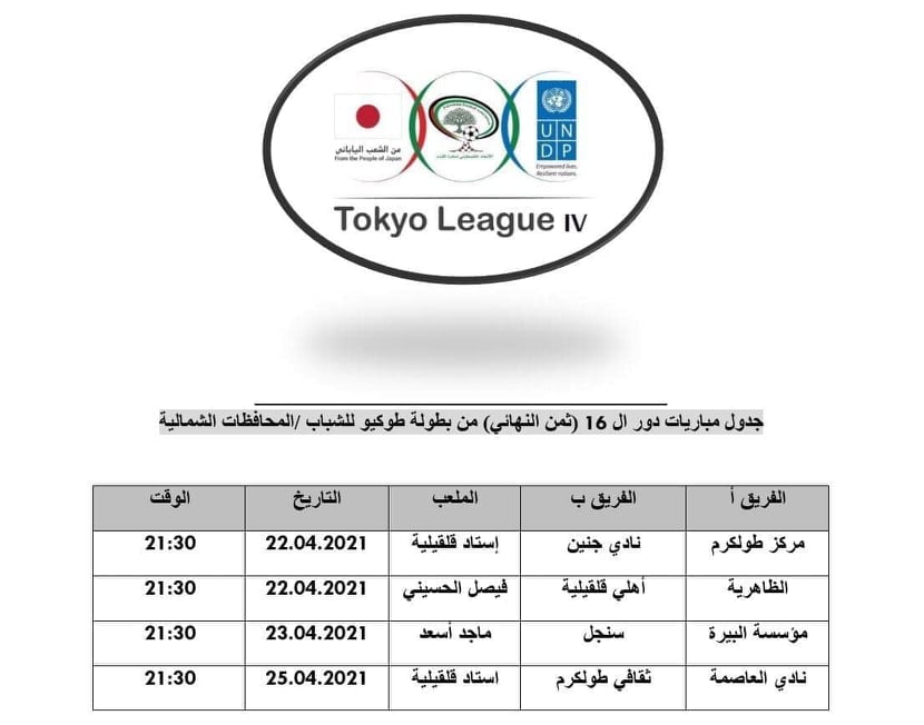 نشر الاتحاد الفلسطيني لكرة القدم، الاثنين 19.04.2021، جدول مباريات دور الـ16 من بطولة طوكيو الرابعة للشباب.