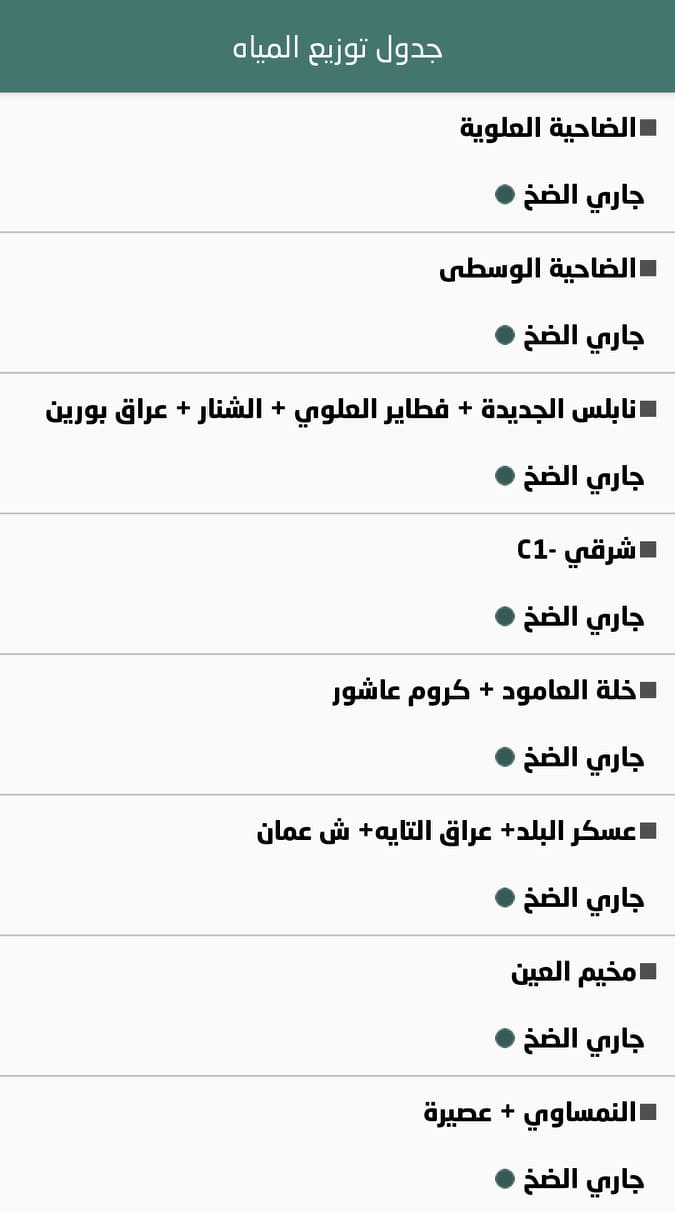 جدول توزيع المياه في نابلس وضواحيها الأحد 25.4.2021.