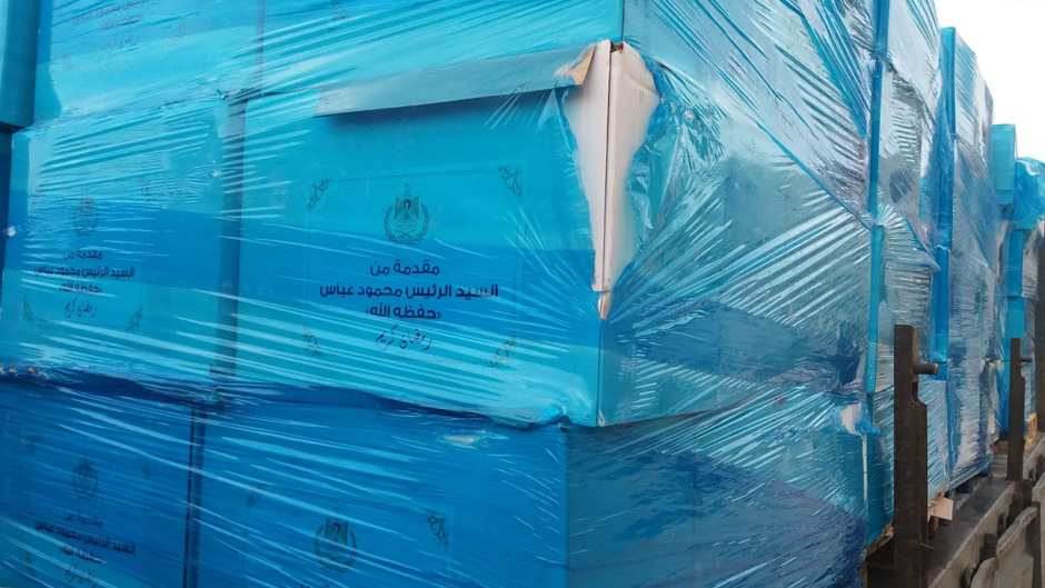 محافظ قلقيلية يتسلم طروداً غذائية مكرمة من الرئيس محمود عباس كمساعدات للعائلات المتعففة.