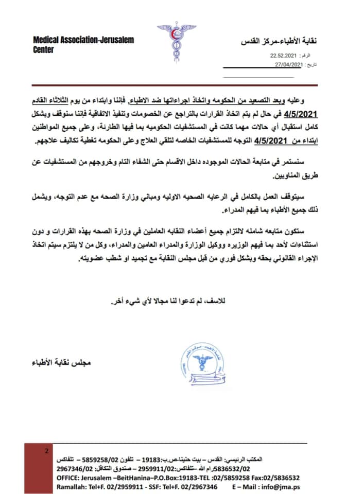 بيان صادر عن نقابة الأطباء بعد مرور أكثر من شهر على الفعاليات الاحتجاجية.