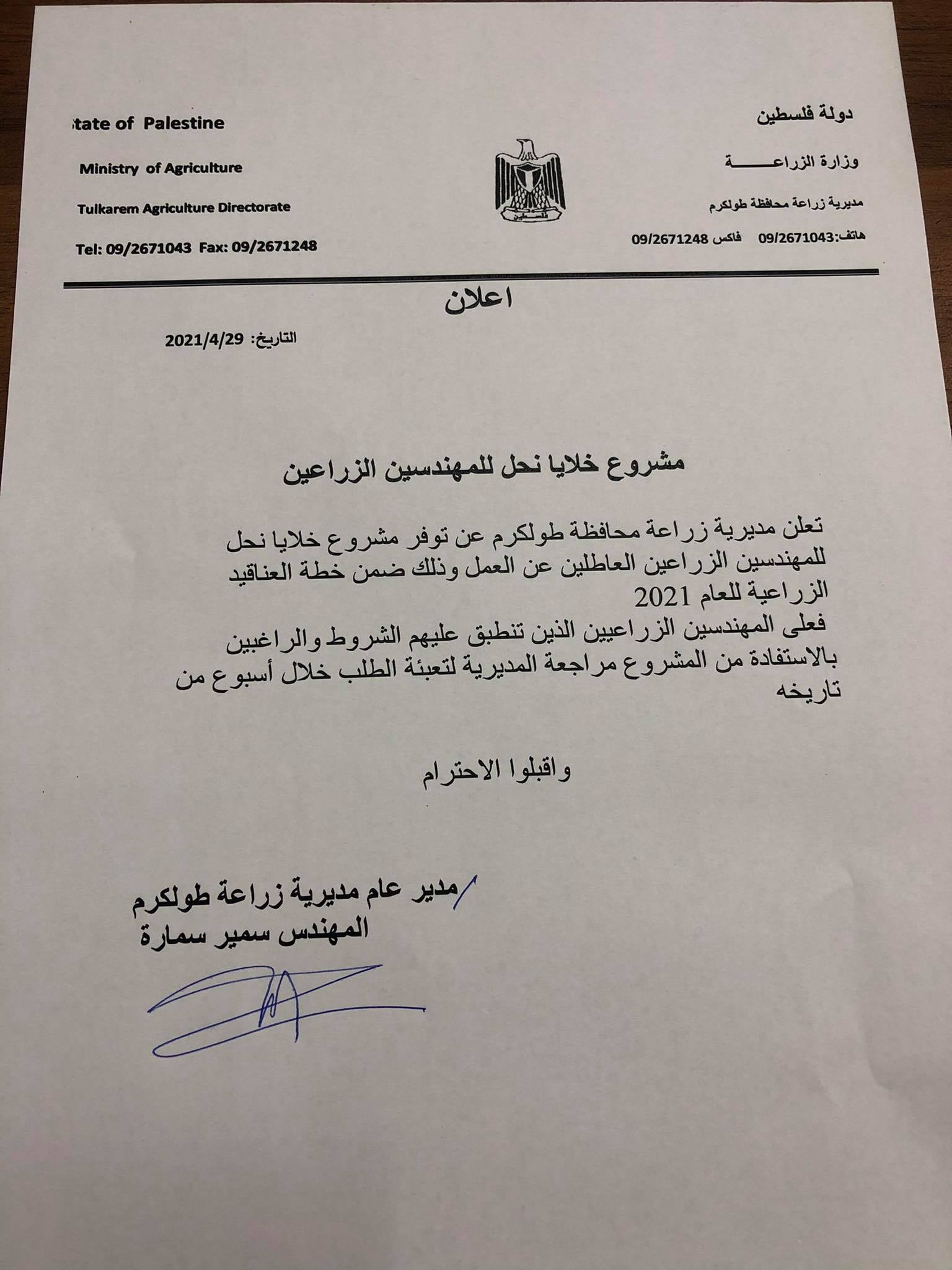 المصدر: مديرية زراعة طولكرم
