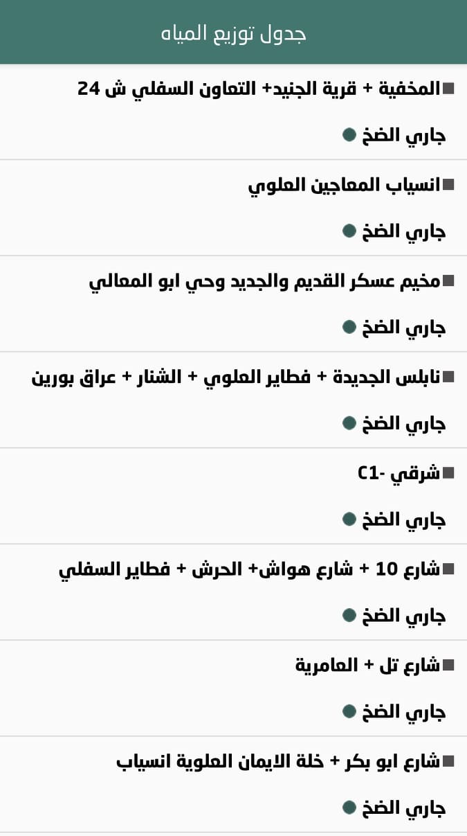 جدول توزيع المياه في مدينة نابلس وضواحيها ليوم الاثنين 03.05.2021.