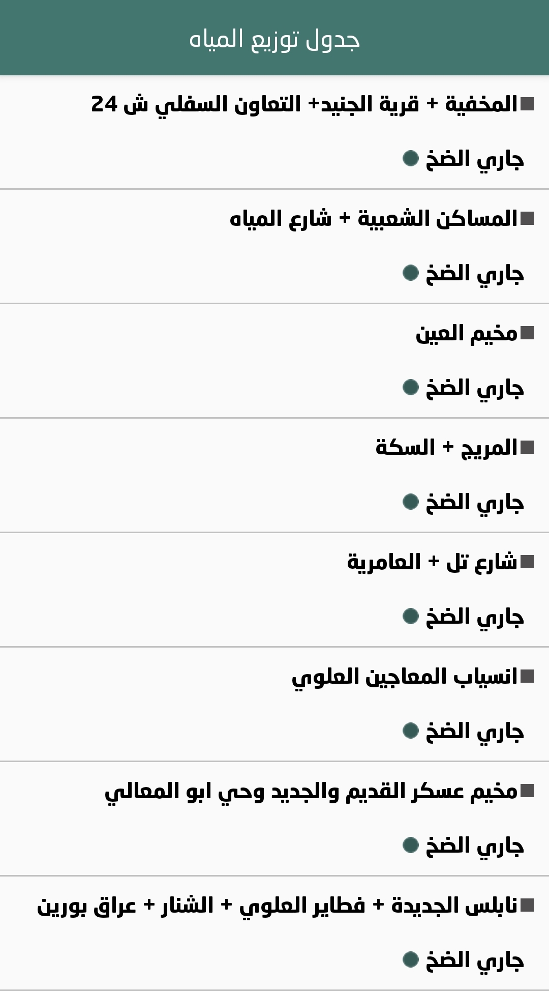 جدول توزيع المياه في نابلس