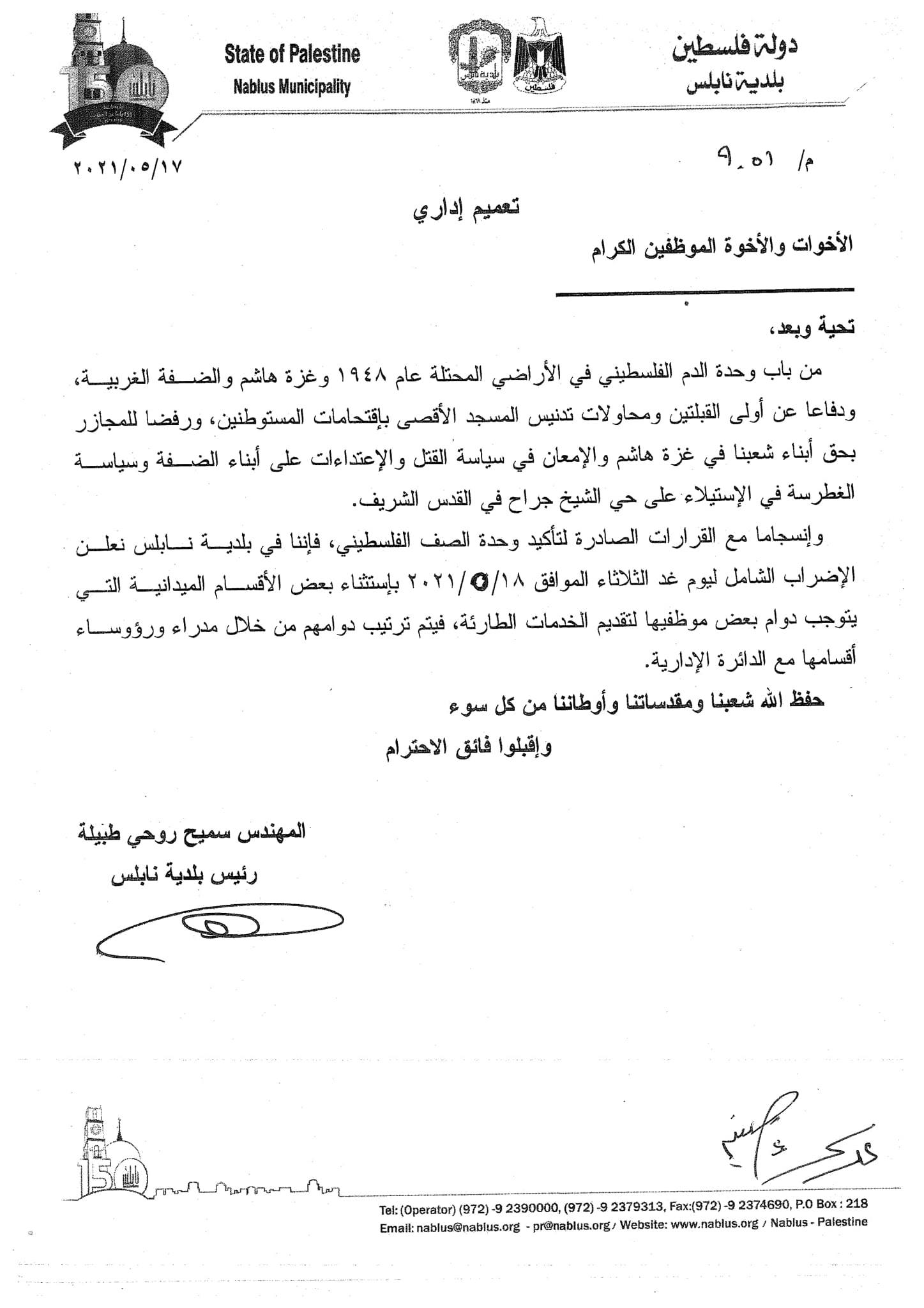 المصدر: بلدية نابلس
