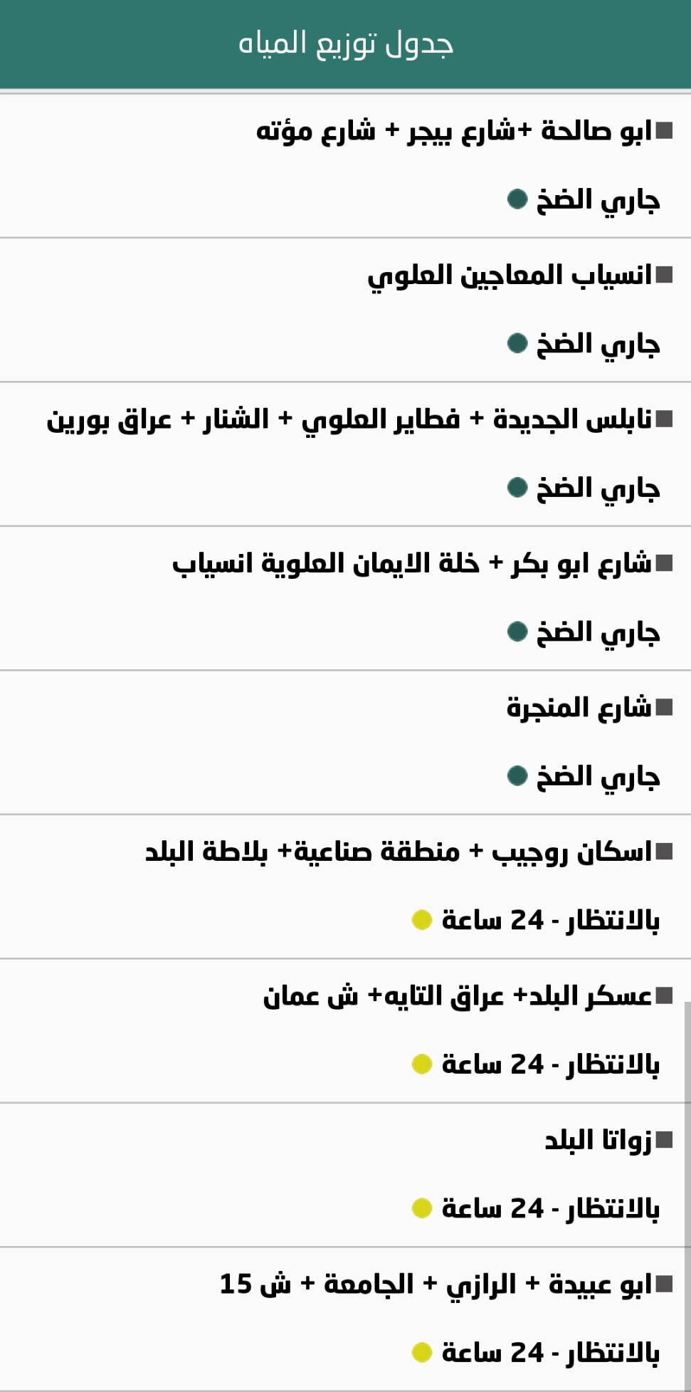 جدول توزيع المياه في نابلس