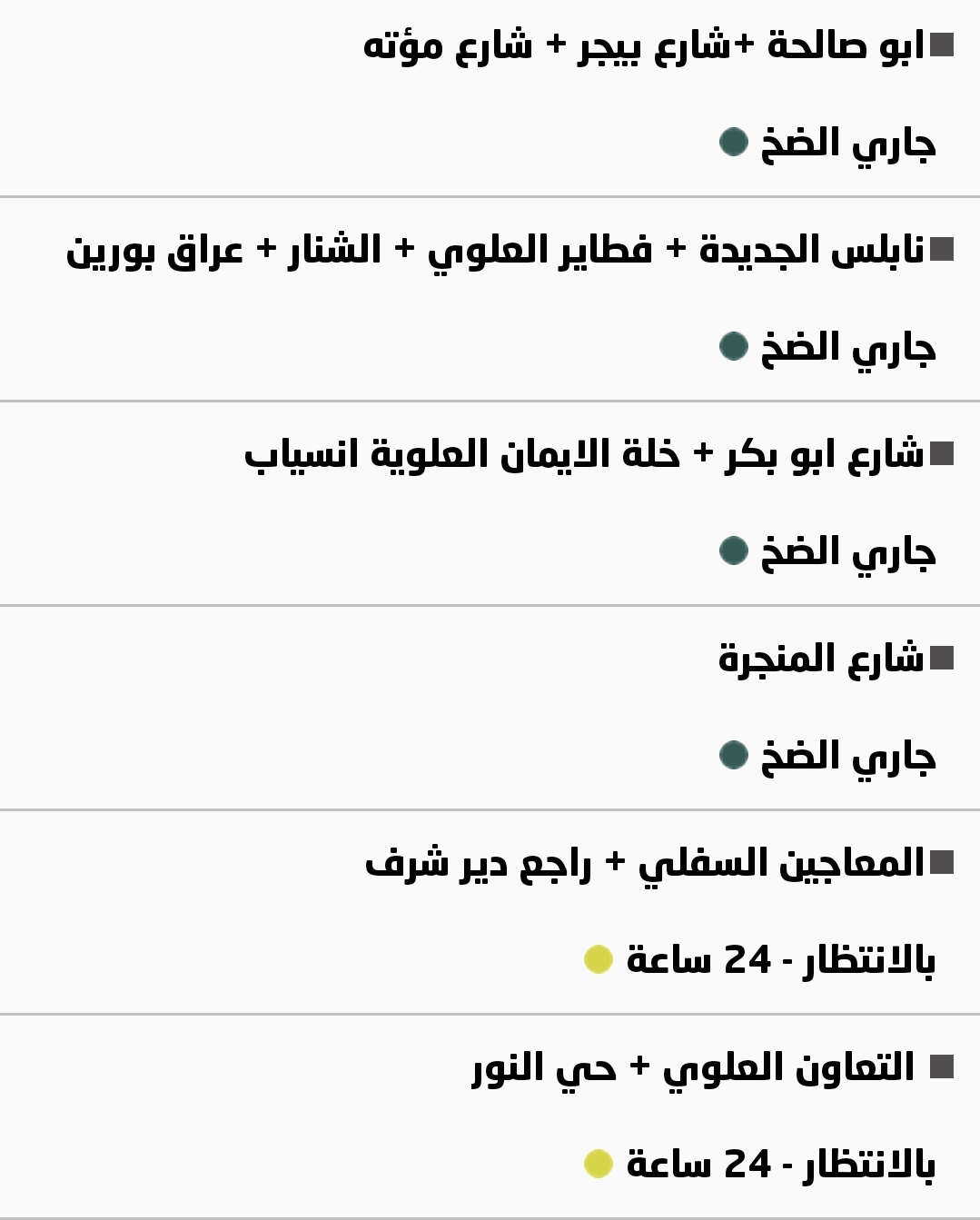 جدول توزيع المياه في نابلس