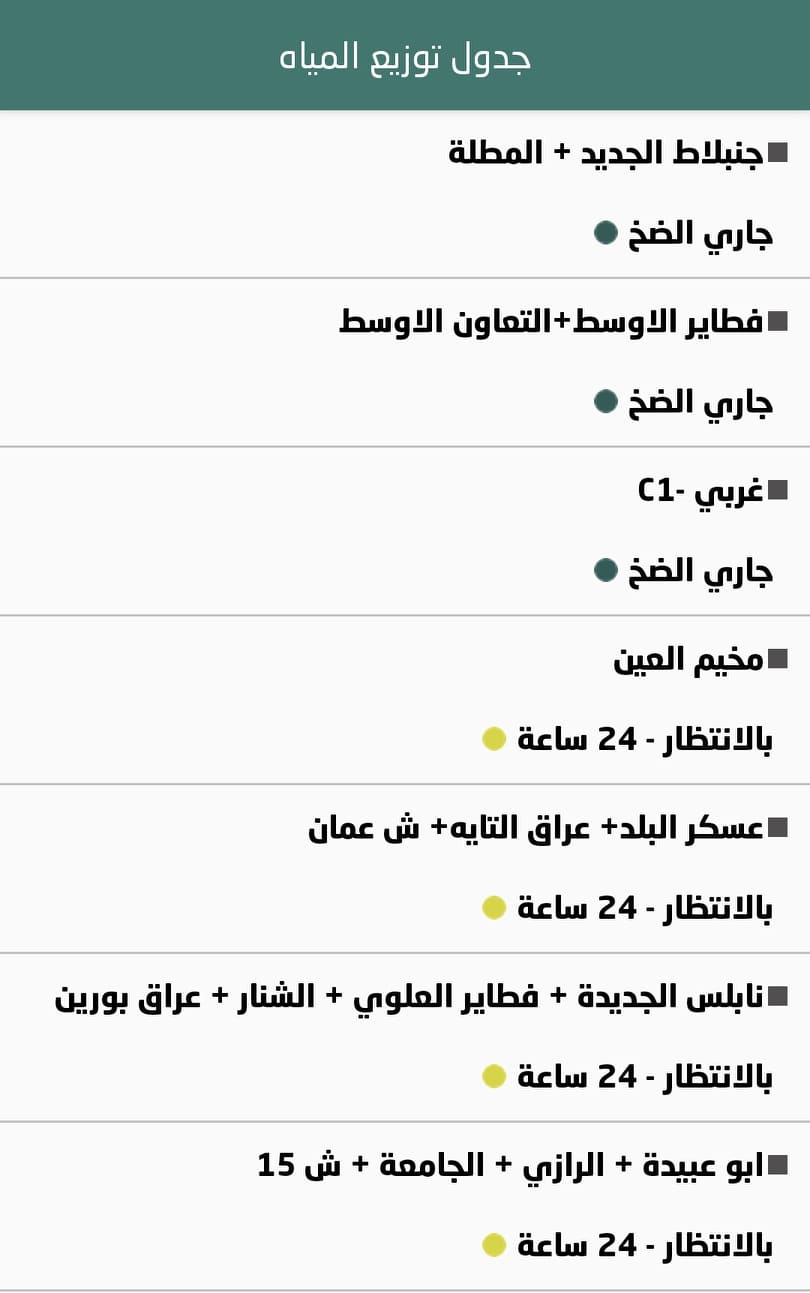 جدول توزيع المياه في نابلس