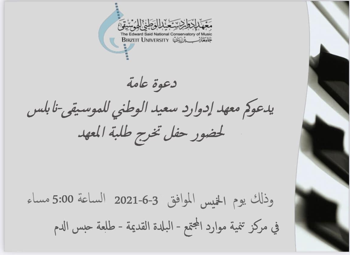 يدعوكم معهد إدوارد سعيد الوطني للموسيقى - فرع نابلس، لحضور حفل تخرج طلبة المعهد.