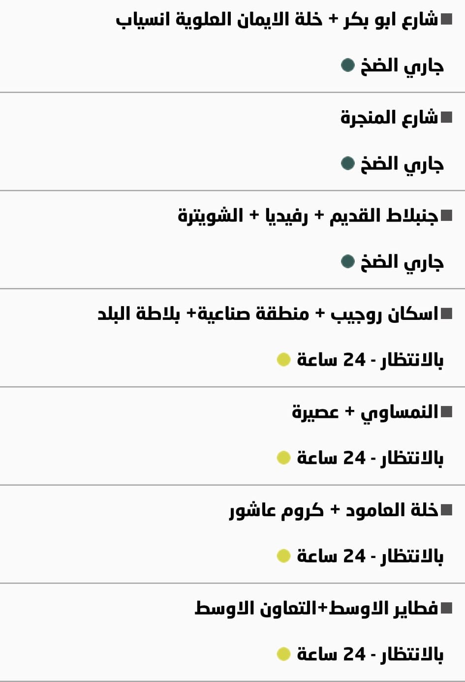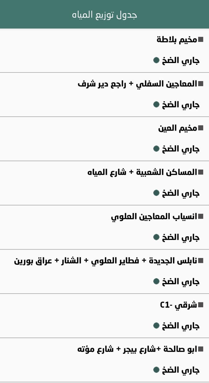 جدول توزيع المياه في نابلس