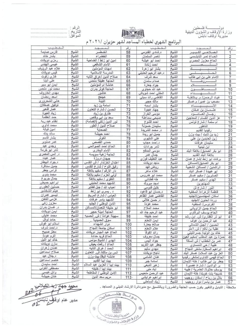 المصدر: مديرية أوقاف نابلس