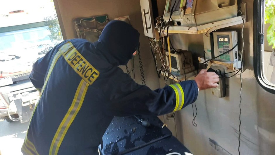 وعملت الطواقم على إخماد الحريق وحماية باقي أجزاء ومحتويات ومعدات المركبة والمشفى المتنقل، وبعد حصر الأضرار تبين أن الحريق بأحد الأجهزة الطبية.
